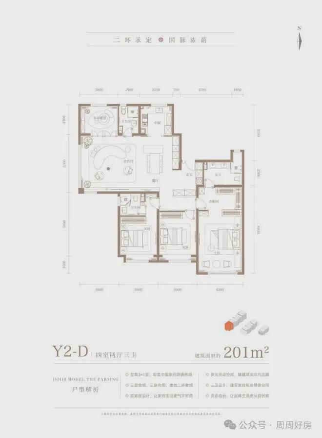 3.东方气宇:承中式气韵,以东方屋脊坡屋顶、官帽式大挑檐的庄严巍峨,护佑家府。