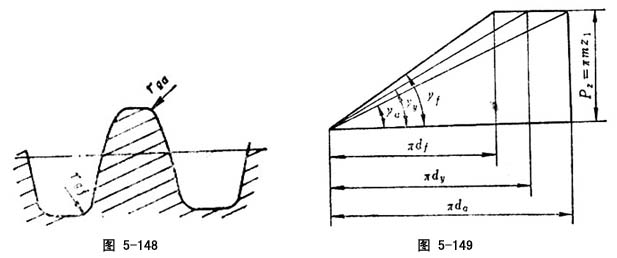 在蜗杆轴向平面上度量的蜗杆齿面与齿根曲面间过渡圆弧半径(图5-148)。