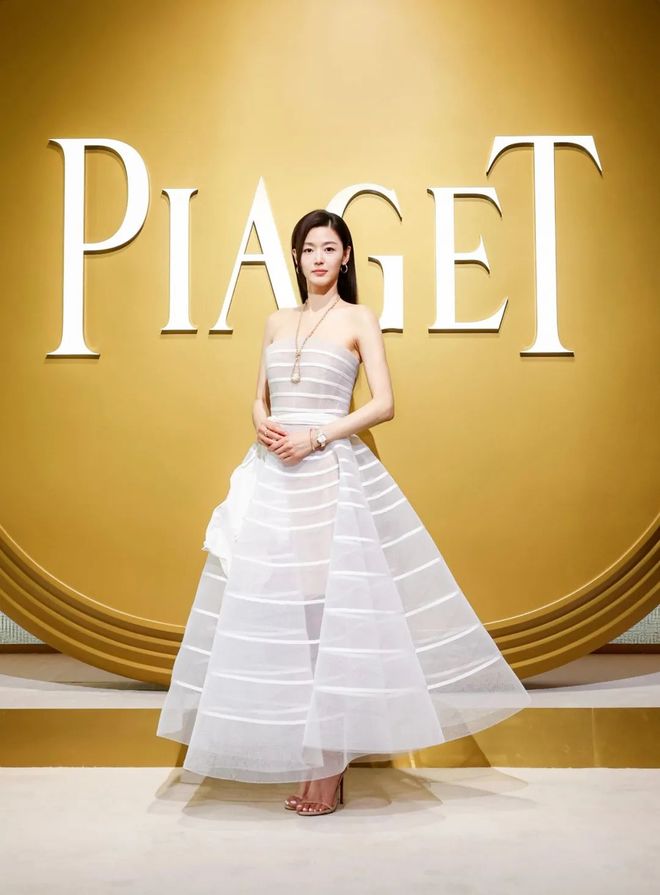 PIAGET 伯爵全球品牌大使全智贤佩戴高级珠宝腕表璀璨现身晚宴,整体造型熠熠生辉,尽显优雅魅力。在鎏金溢彩的氛围中,宾客们举杯致敬黄金年代的美学盛宴,时代精神与当代创想之间构筑起独特的艺术桥梁。