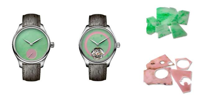 勇创者系列小三针概念版Pop腕表与勇创者系列陀飞轮概念版Pop腕表(缅甸玉和粉色欧泊表盘)