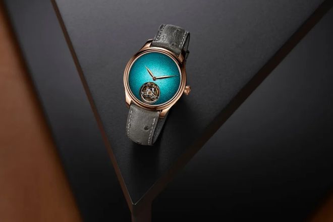 端午的碧波龙舟划过千年长河,而亨利慕时则以绿松石色珐琅表盘重现这一抹深邃。「Endeavour Tourbillon Concept Turquoise Enamel 勇创者系列陀飞轮绿松石色珐琅概念腕表」,将「大明火」珐琅工艺推向巅峰,为这项古老技艺注入现代美感。品牌重新诠释其标志性的烟熏美学,打造出色彩浓郁、惊艳夺目的腕表杰作。