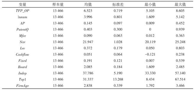 为防止遗漏变量的影响,参考已有研究,选取以下控制变量:企业规模(Size)、企业年龄(Firm Age)、现金流水平(Cashflow)、资产负债率(Lev)、固定资产占比(Fixed)、第一大股东持股比例(Top1)、董事会规模(Board)、独立董事占比(Indep),同时加入时间(Year)和行业(Ind)固定效应。