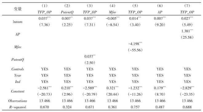 式(2)—(3)中:机制变量Mit分别为商业信用(APit)、管理成本(Mfeeit)和企业创新质量(Patent Qit);其余变量含义与式(1)一致。