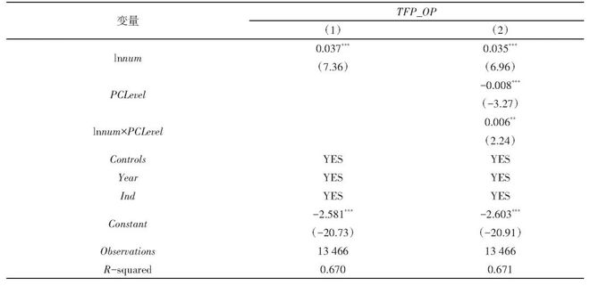 为了排除多重共线性的影响,本文采取了方差膨胀因子(VIF)检验。对各主要变量进行回归时,方差膨胀因子均在2以内,表明回归结果不会受到多重共线性的影响。豪斯曼检验显示,P值小于0.01,拒绝原假设,因此本文使用固定效应模型进行面板数据回归分析。